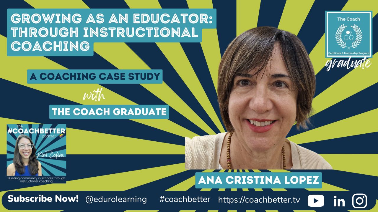 This #coachbetter episode is another in our series of coaching case studies, with one of Kim’s amazing clients, Ana Cristina Lopez. Ana Cristina is a highly experienced educator (currently a HS & AP Spanish Teacher at Daegu International School in South Korea). At the time of recording, she had just graduated from The Coach Certificate and Mentorship Program, right after completing Getting Started as an Instructional Coach the year before.